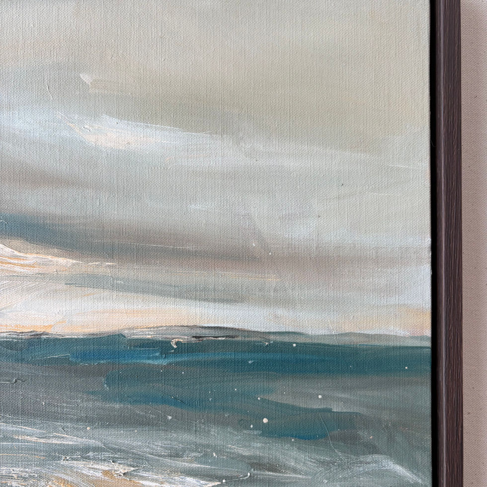 Held Low reflects those low, steady moments along the coast when the sky sits close to the water and everything feels softened and contained. The horizon is quiet, the movement subtle, and the colours held back - blues and greys layered with small breaks of warmth near the surface.