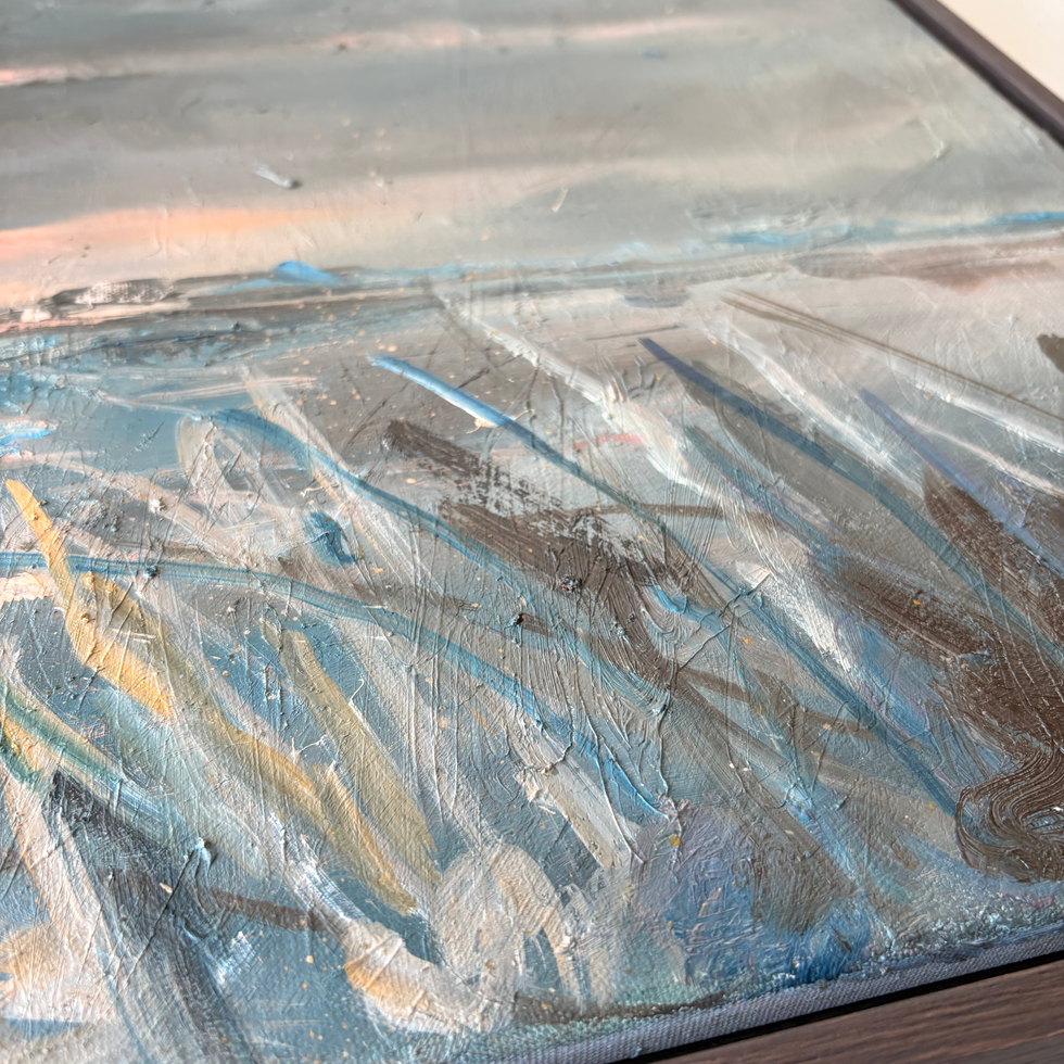 The surface of the painting holds that memory: layers built up and scraped back, rough textures echoing the harsh shoreline, smoother passages letting the light settle in again. It’s a piece about those days when everything feels overwhelming right up until the moment it doesn’t - when you look up and realise you’ve made it through something heavy, and the world appears changed, calmer, more open.