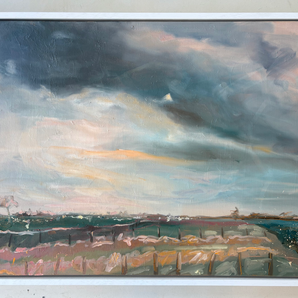 This piece grew from the feeling of slowly finding my way back to myself after a difficult stretch - the way the horizon can feel impossibly small for a while, then gradually widen again as you start to breathe a bit more deeply. The shifting colours, the expanding light, the quiet sense of possibility - they all found their way into the layers.