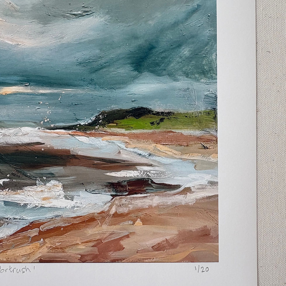 In a home, Along the Portrush Coast brings a sense of space and air. It works well in shared living areas, hallways, or anywhere you want a visual pause - something you can glance at and feel the room open up slightly. It’s a painting that holds movement quietly, offering a steady reminder of the coast and the calm that comes with stepping back into it.